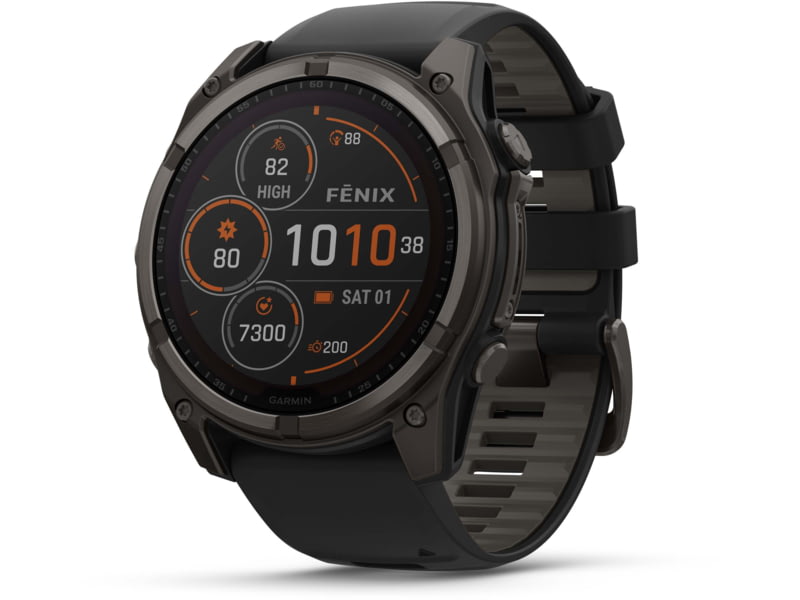 Garmin fenix 8 Solar 51mm GPS Watch Sapphire Carbon Gray DLC Titanium with Black/Pebble Gray Silicone 010-02907-10