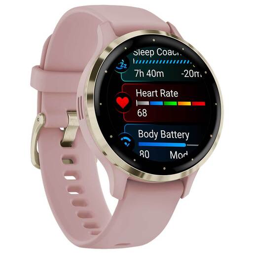 Garmin Venu 3S GPS Smartwatch - Soft Gold Stainless Steel Bezel with Dust Rose 41mm