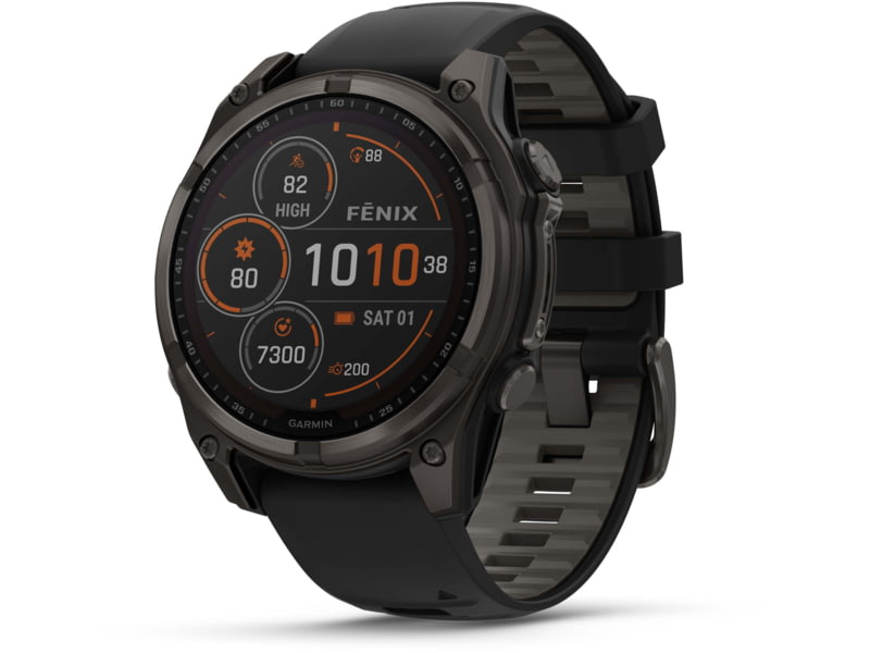 Garmin fenix 8 Solar 51mm GPS Watch Sapphire Carbon Gray DLC Titanium with Black/Pebble Gray Silicone 010-02907-10. The fenix 8 multisport GPS smartwatch is built for serious athletes and outdoor adventurers who want to push beyond their limits. It...