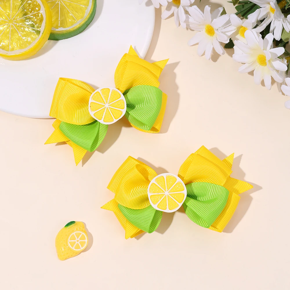 2Pcs New Lemon Bow Hair Clips Cute Fruit Ribbon Hairpins Sweet Trendy Barrette Girls Children Yellow Headwear Hair Accessories