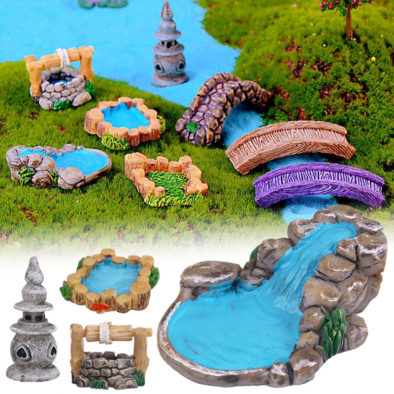Micro Landscape Ornament Miniature Lighthouse Water Well Bridge Vintage House Fairy Garden Craft DIY Mini Home Decor Figurines
