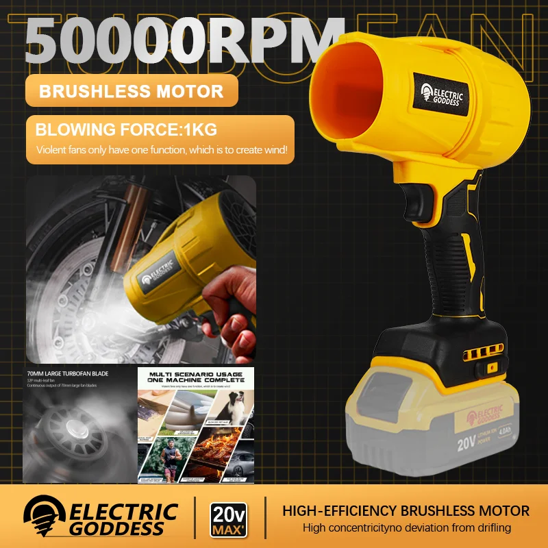 Electric Goddess 1500W Electric Brushless Air Blower Jet Turbo Blower 200M/S Car Dryer Dust Blowing Tools For Dewalt 20V Battery  Read more
