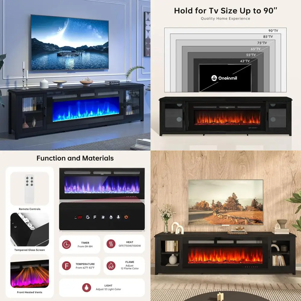 Modern 80" TV Stand with 50" Electric Fireplace and Adjustable Shelf Entertainment Center