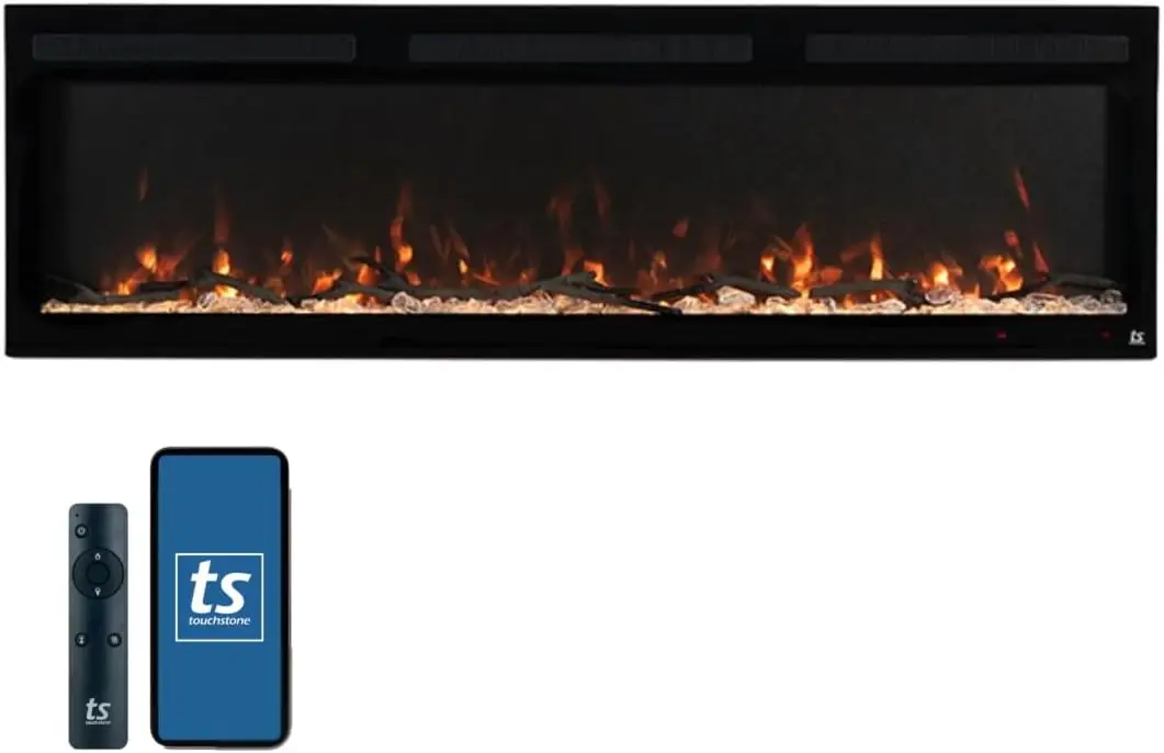Smart Electric Fireplace-The Fury 65" Wide- 4.5" Thin in Wall Recessed-100 Realistic Flame/Ember Bed Color Combos-1, 500W Heater