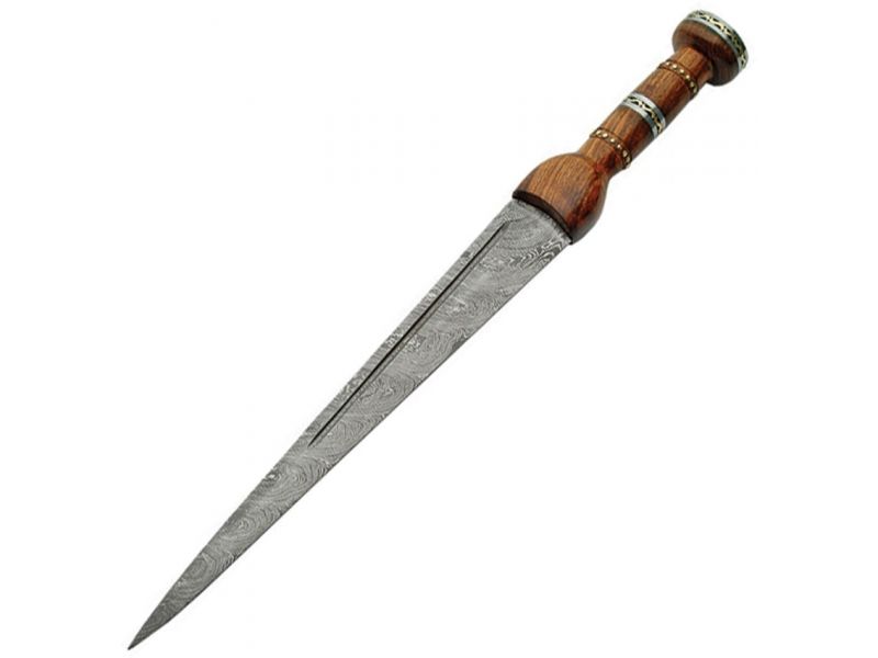 Damascus 13.75 Seax Bld Hnd Ws 8.75 in Fixed Blade Knife Black and red sculpted wood DM1368RD