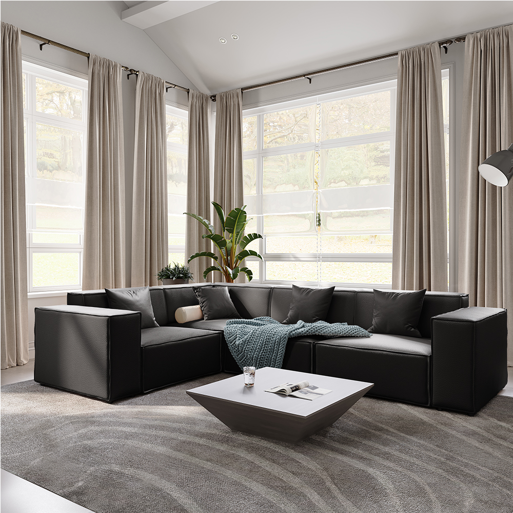 111.79" Genuine Leather L-Shape Sectional Sofa, Minimalist Modular Sofa, Oversized Couch with Track Arm, Black