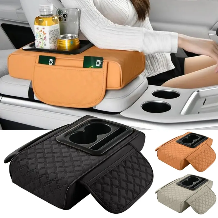 Car armrest pads Organizer, Car Armrest Extender with Storage, Leather Tissue Box Holder, Storage Tray Height Adjuster for Cente