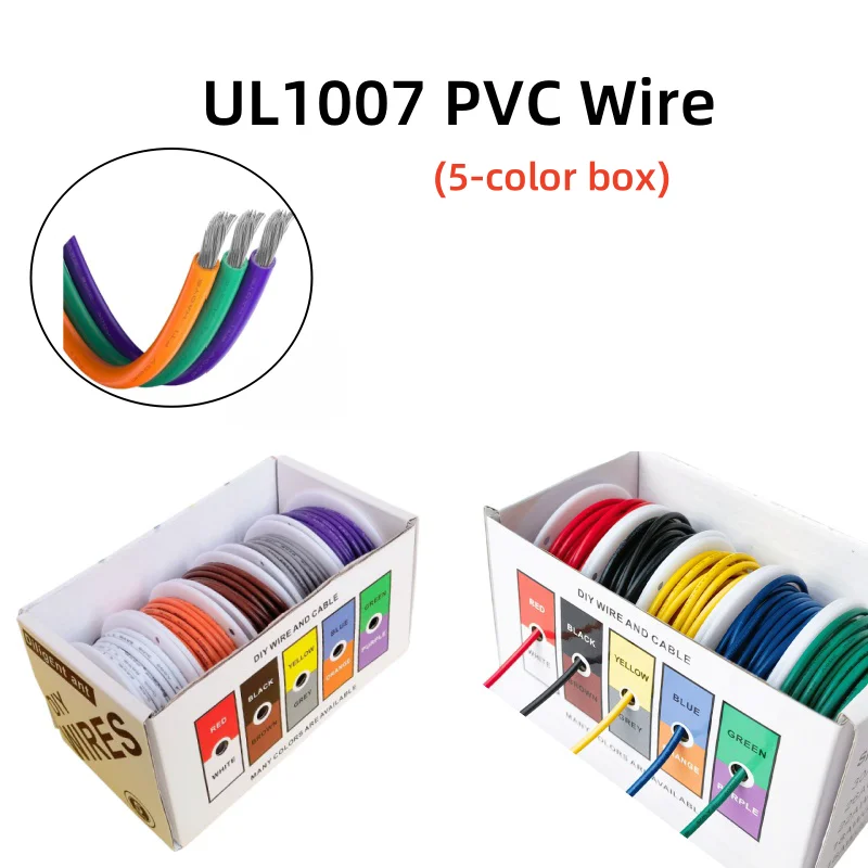 Boxed UL1007 Wire PVC Insulated Tinned Copper Cable 5 Colors Kit 30/28/26/24/22/20/18/16 AWG Stranded Electrical Line PCB Wire