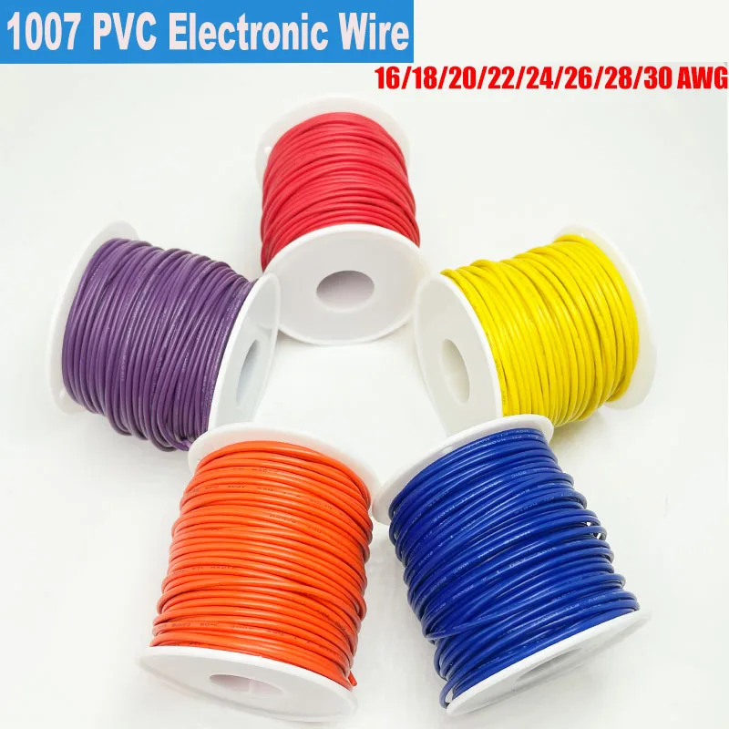1007 PVC Electronic Wire 30AWG 28 26AWG 24AWG 22AWG 20AWG 18AWG 16AWG Tinned Copper Connecting Wire 300V 80°C Cable with Spools