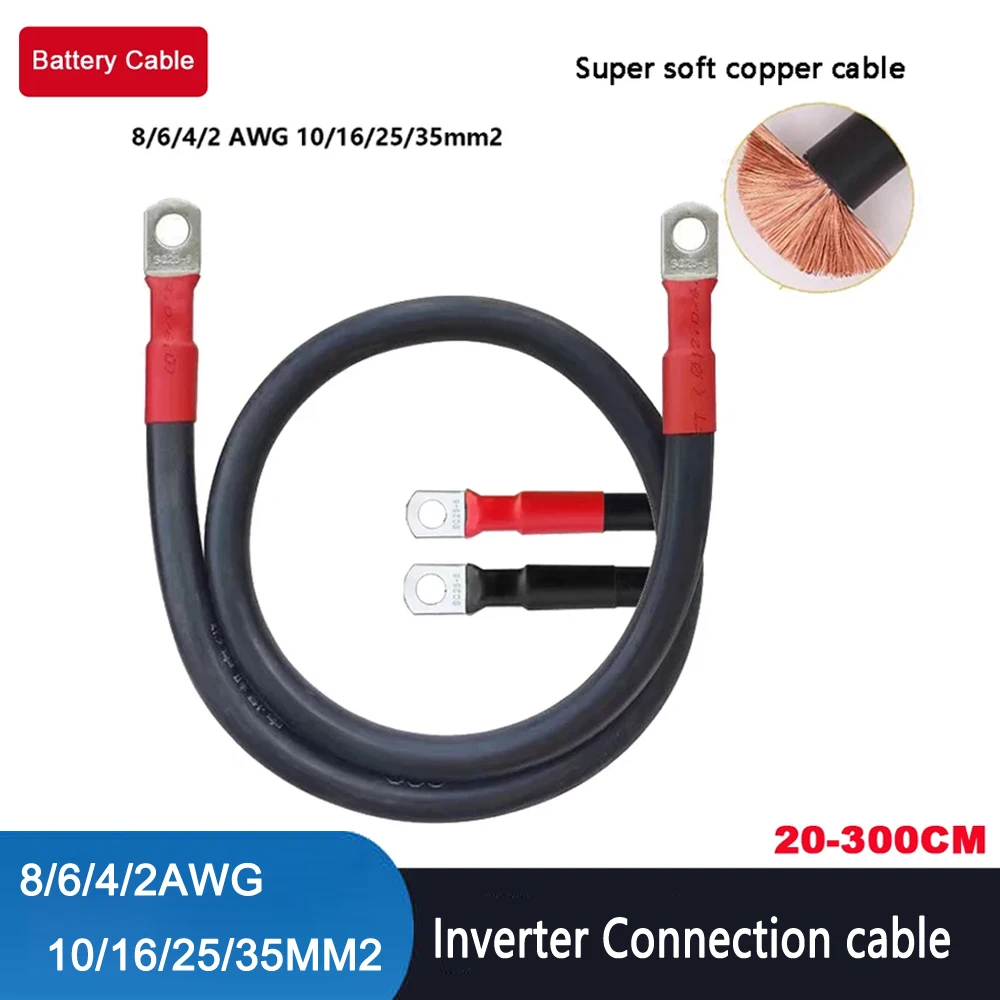Soft Battery Connection Cable 8/6/4/2AWG Stranded Copper Wire 10/16/25/35mm2 with SC M6 M8 M10 Lug For Inverter Car Solar UPS  Read more