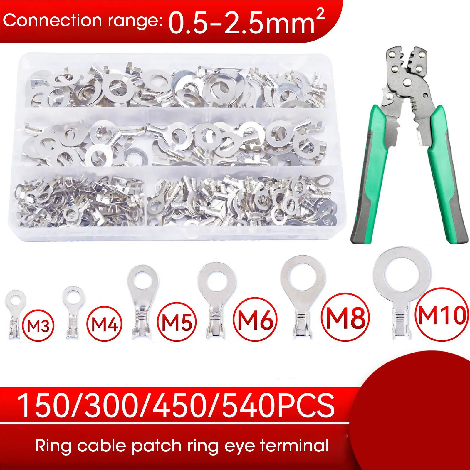 150~540PCS M3/M4/M5/M6/M8/M10 Ring Lugs Eyes Copper Crimp Terminals Cable lug Wire Connection Non Insulated Assortment Kit