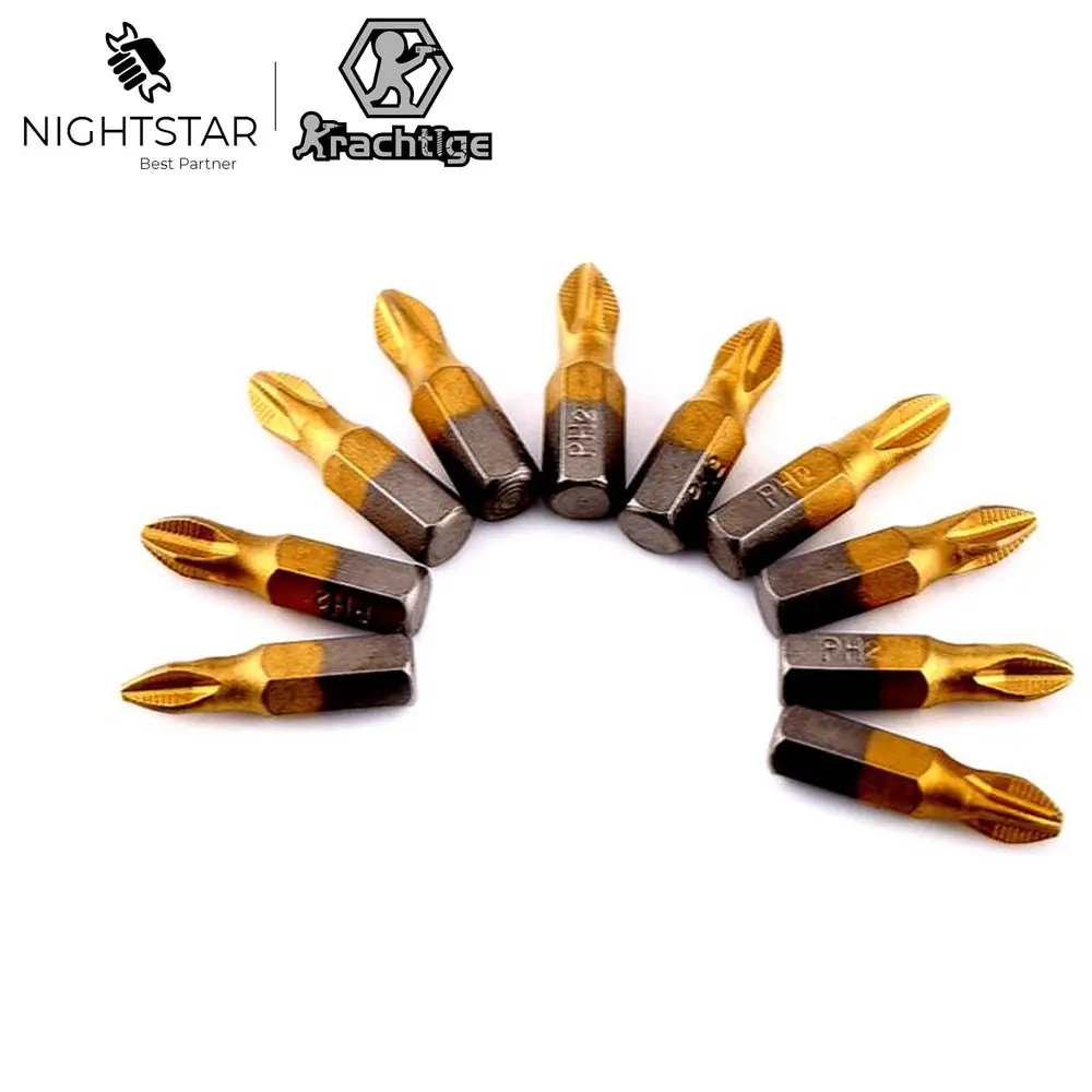 Krachtige 10pcs 1/4" Shank Titanium Coated Screwdrivers Drill Bits Tools 25mm Anti Slip PH2 Screwdriver Bit
