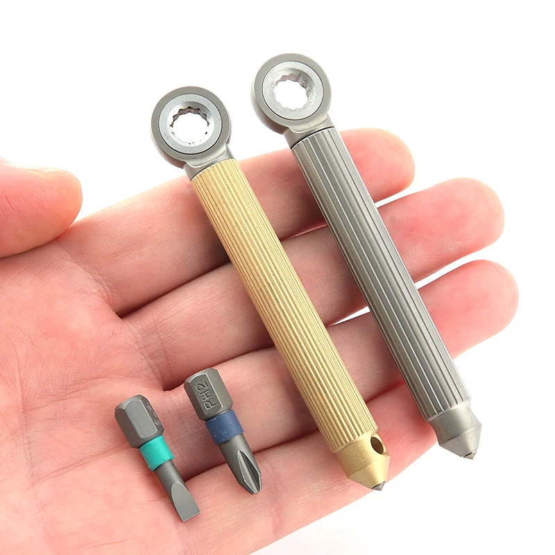 Titanium Alloy Brass Modular Screwdriver Ratchet Wheel Screwdriver With 2PCS S2 Bit EDC Riding Equipment Tungsten Head Gadget