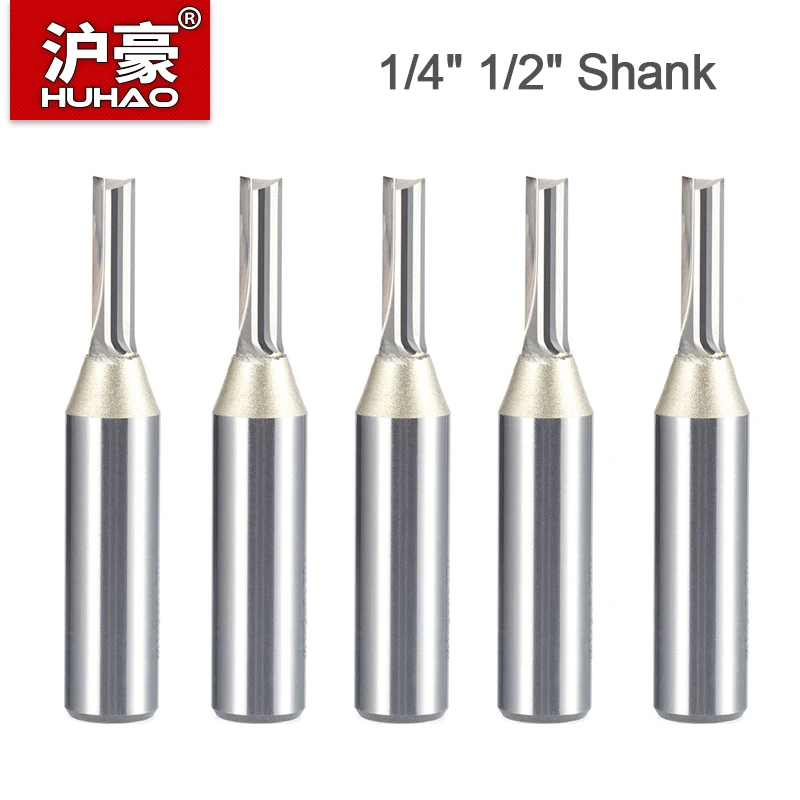 HUHAO TCT Straight End Mill Cleaning Bottom Router Bits 1/2 1/4 Inch Shank Carbide Steel for MDF Wood Acrylic CNC Engraving Tool