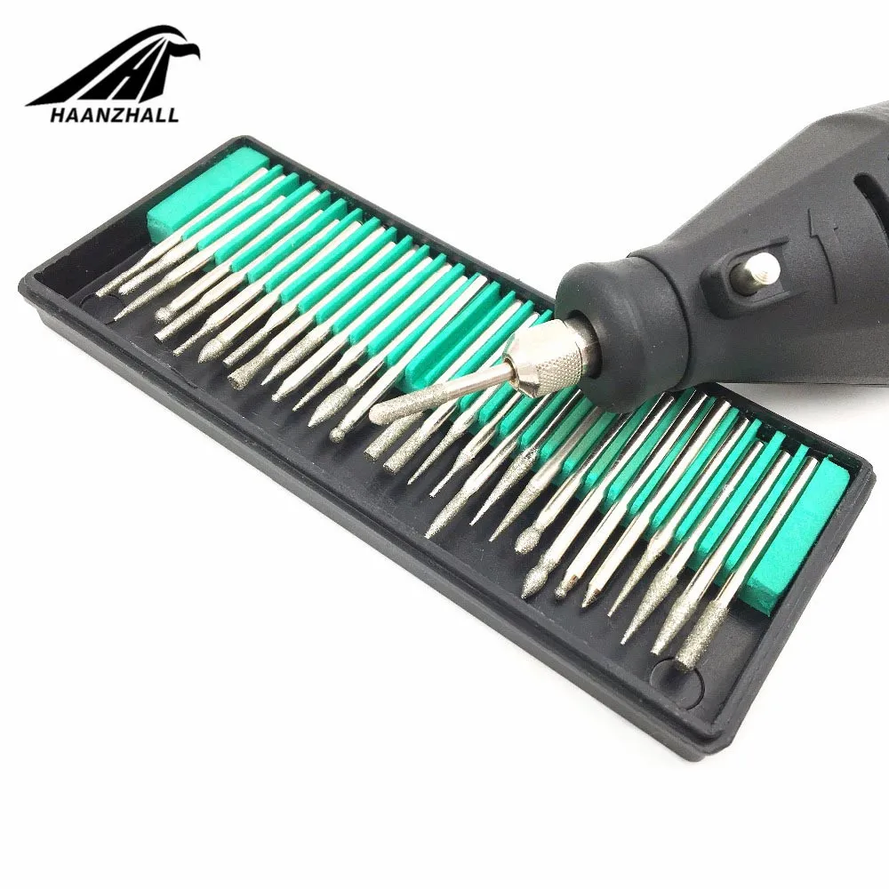 30PCS 3mm Mini Drill Bits Diamond Burs Grinding Wheel Abrasive Shank Wood Stone Engraving for Dremel Power Tools Accessories