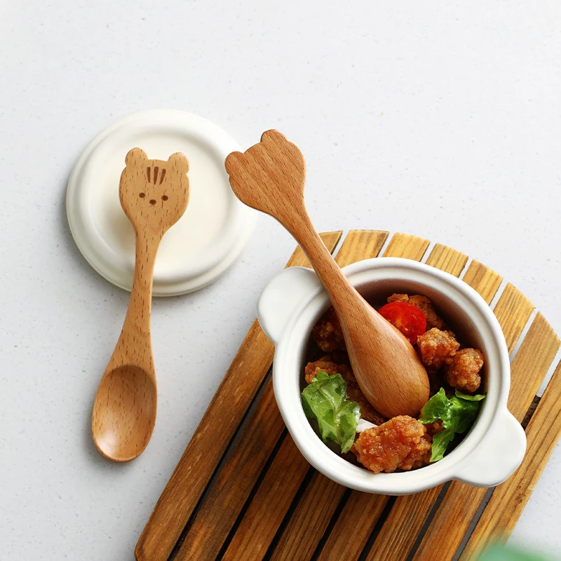 Creative Cartoon Small Wooden Spoon Smooth Teaspoon Honey Coffee Oval Spoon Kitchen Utensil Decorative Art Craft