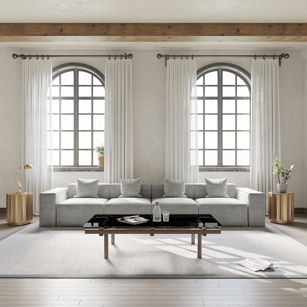 147.63’’ Minimalist Modular Sofa, Track Arm Sofa, Deep Seat Couch, Anti-scratch and Water-proof, Light Gray