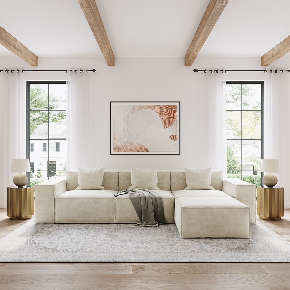 115.75’’ Modular Sofa with Couch Ottoman, Deep Seater Couch, Anti-scratch and Water-proof, Beige