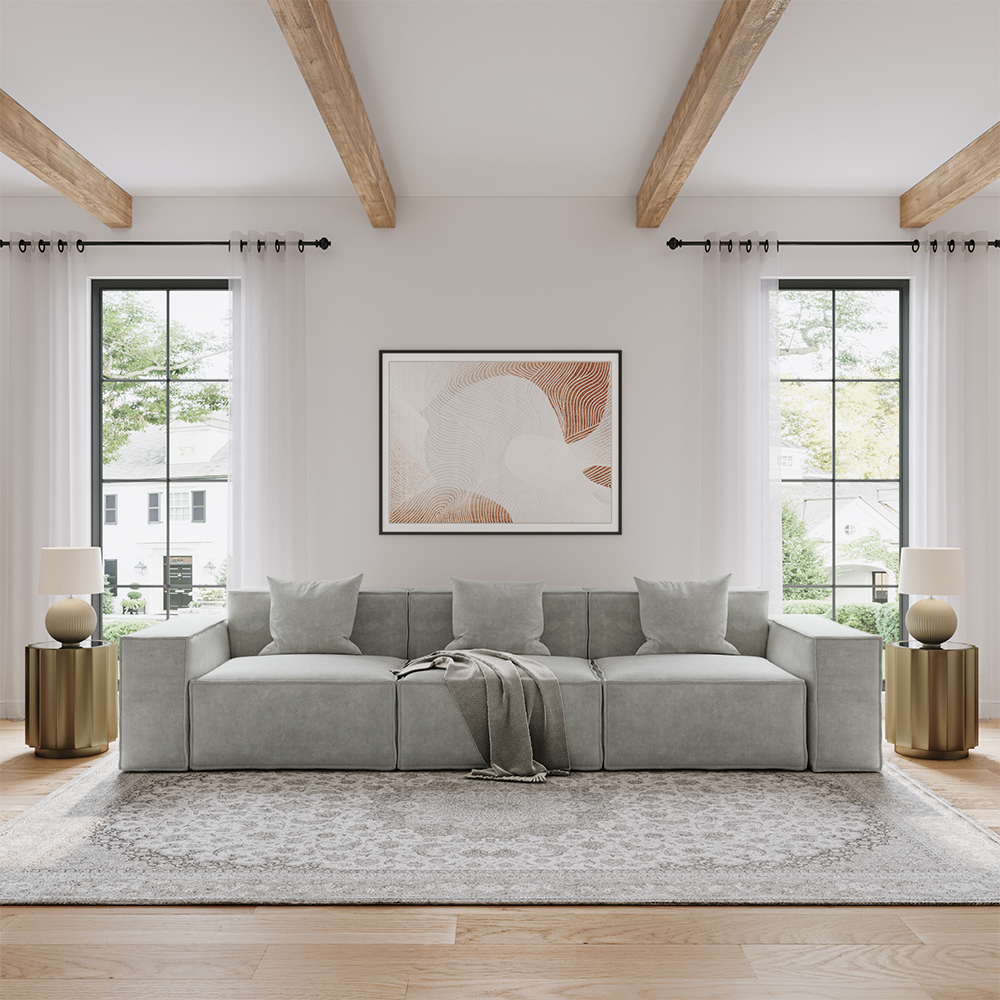 115.75’’ Minimalist Modular Sofa, Track Arm Sofa, Deep Seat Couch, Anti-scratch and Water-proof, Light Gray