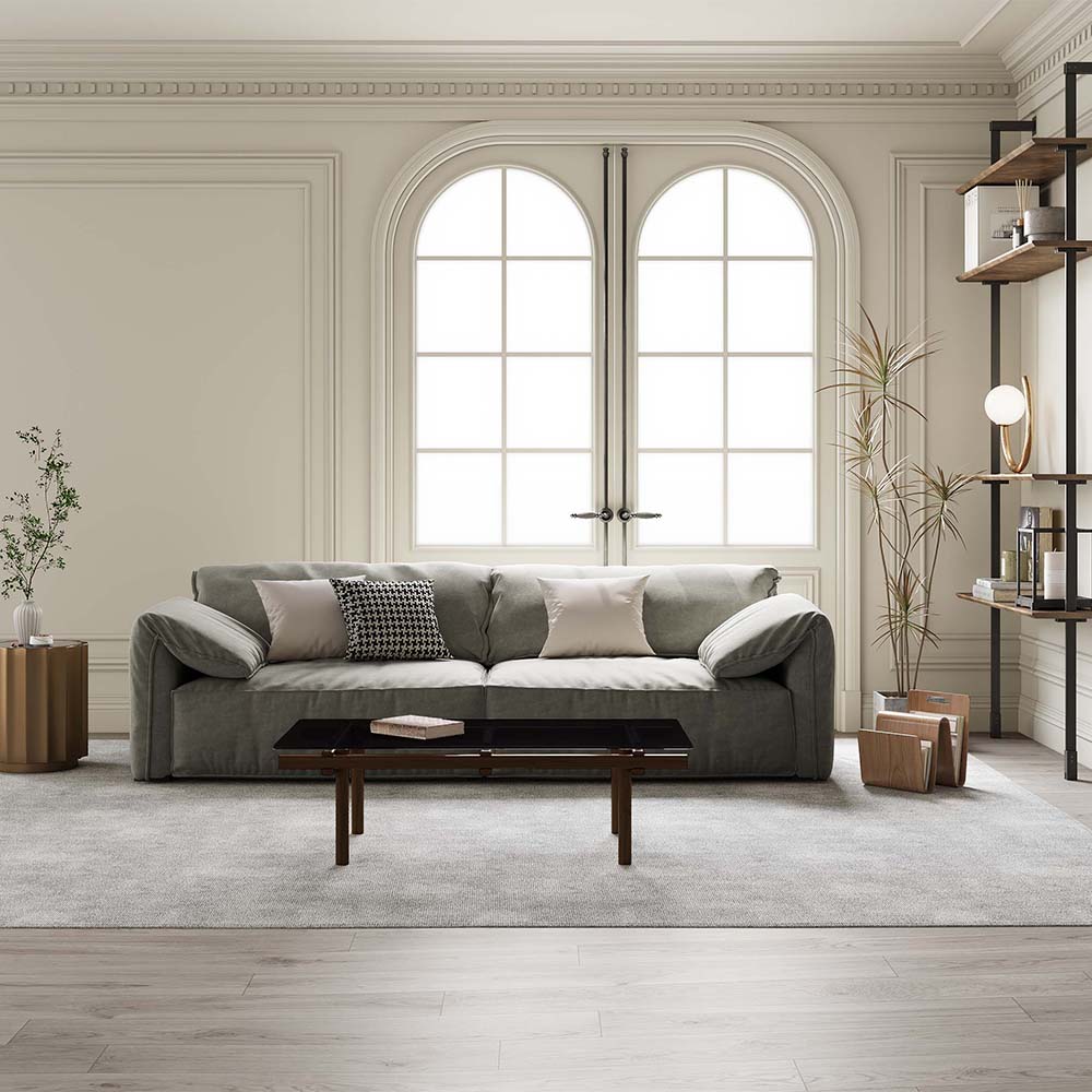 86.61" Minimalist Deep Seat Sofa, Couch with Armrest, Anti-scratch and Water-proof, Drak Gray