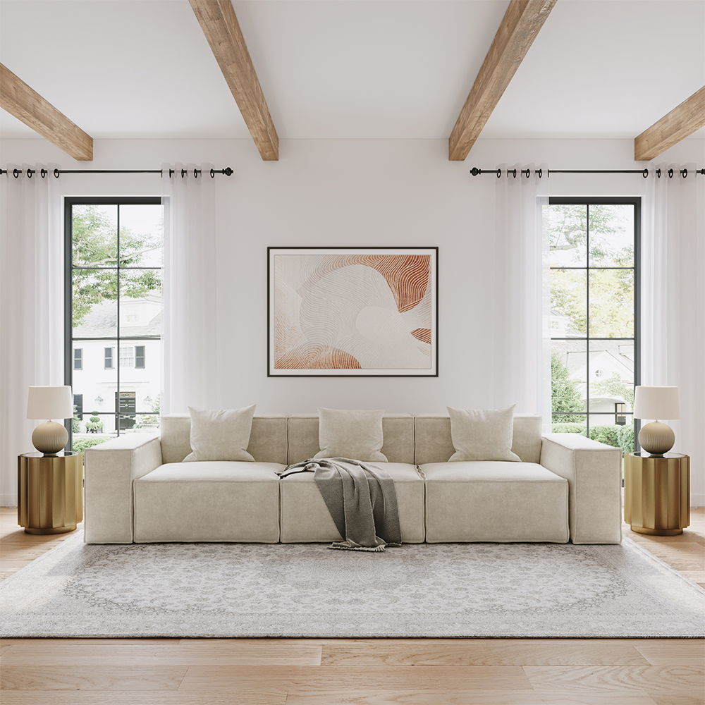 115.75’’ Minimalist Modular Sofa, Track Arm Sofa, Deep Seat Couch, Anti-scratch and Water-proof, Beige