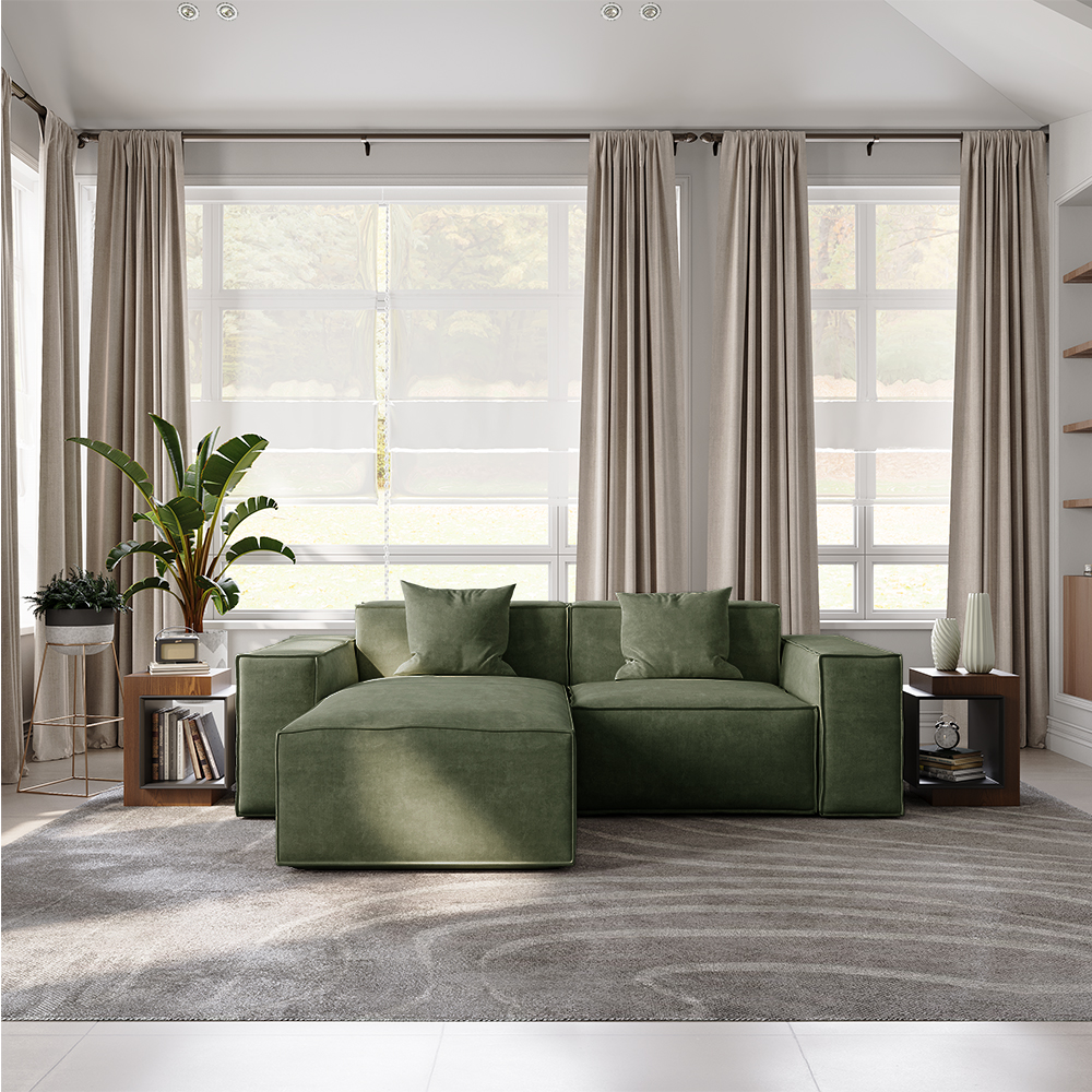 83.86"Reversible Loveseat with Chaise, Deep Seat Couch, Anti-scratch and Water-proof Fabric, Green