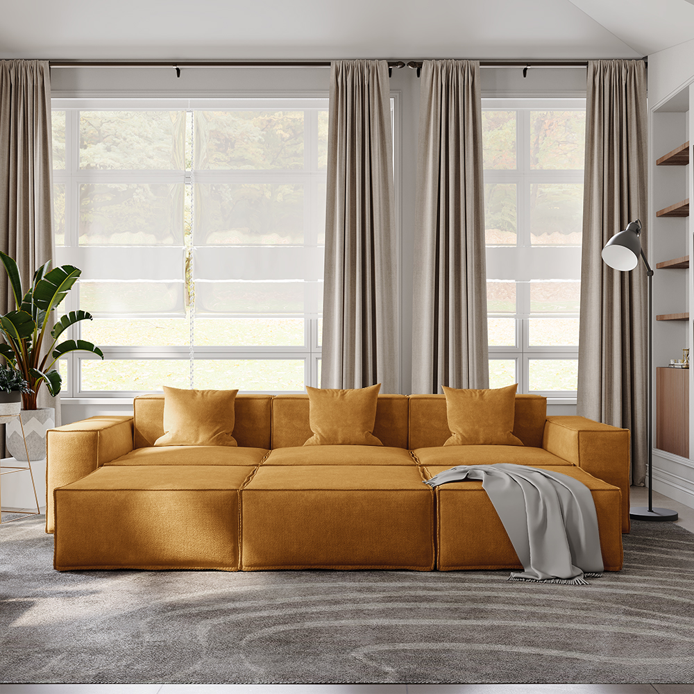 6-Seat Modular Daybed, Deep Seat Couch with 3 Ottomans, Anti-scratch and Water-proof Fabric, Yellow