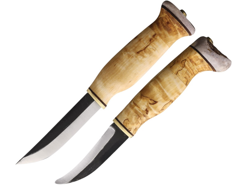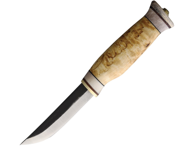 Wood Jewel Vuolu Fixed Blade Knife 8.13in Overall 3.75in Carbon Steel Blade Curly Birch Handle Leather Sheath 23VI