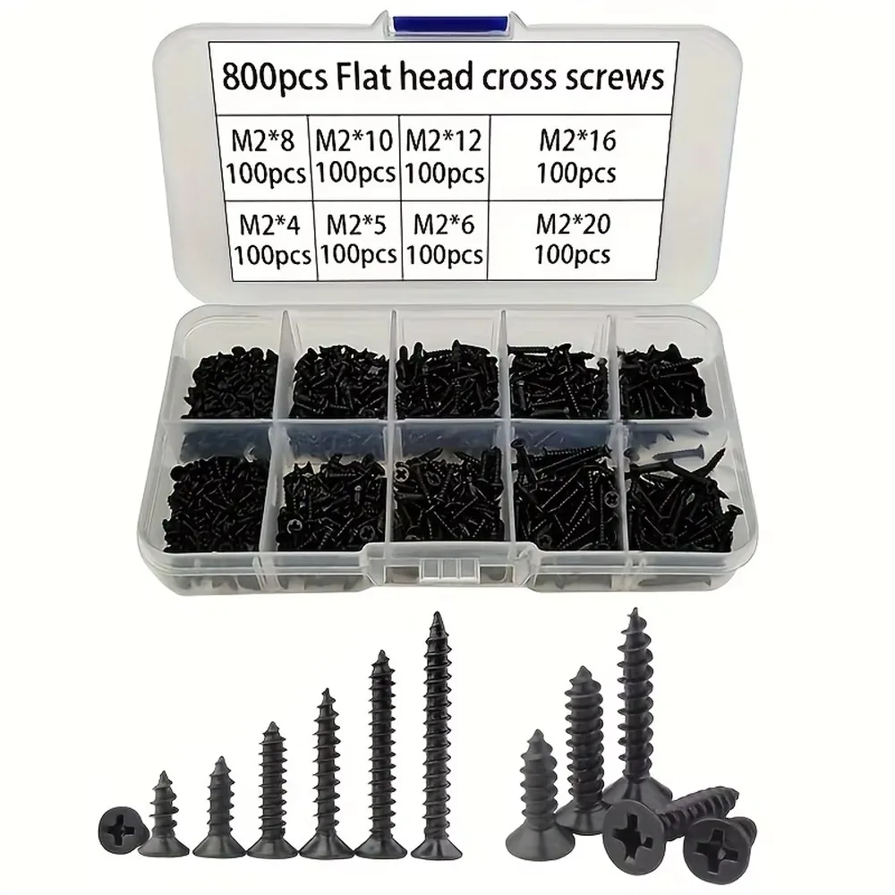 800pcs M2 Black Phillips Self Tapping Screw Assortment Kit, Locking Screws And Wood Screws