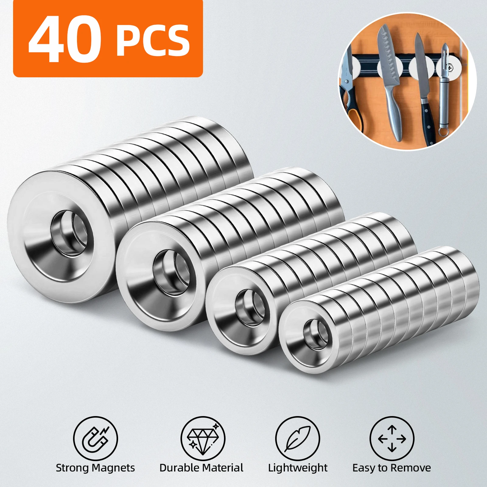 Strong Magnet with Holes, Ring Magnets Heavy Duty, Small Round Magnets for Kitchen Craft Wood DIY Holding Tools Hanging 10x3mm