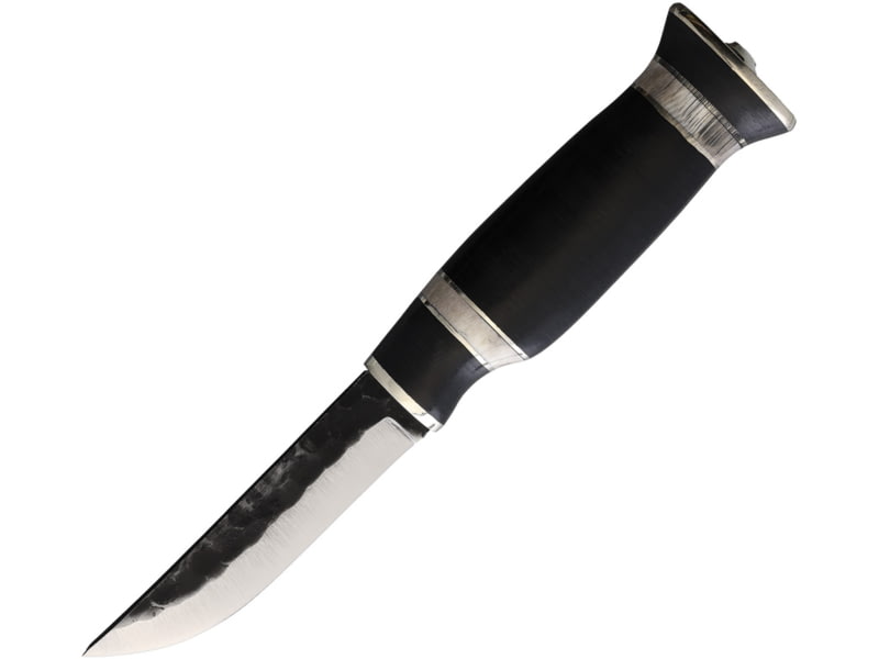 Wood Jewel 8in Stacked Leather Fixed Blade Knife 8in Overall 3.75in Carbon Steel Blade Black Stacked Leather Handle Leather Sheath 23NP. Black stacked leather handle. Horn and nickel silver spacers. Due to the natural materials used knife dimensions...  Read more