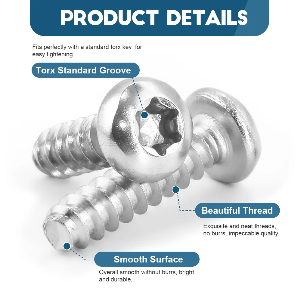 HOWSHENG Stainless Steel M2 M3 M4 M4.2 M5 Six-Lobe Torx Pan Round Head Self-tapping Screw with Flat Tail for Wood  Read more