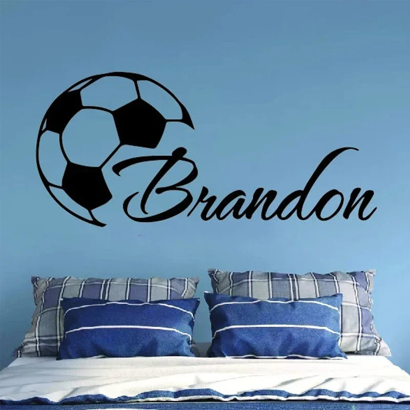 Soccer Ball With Name - Wall Art, Personalized Name Vinyl Sticker, Sports Wall Decor Murals For Boy Bedroom E944