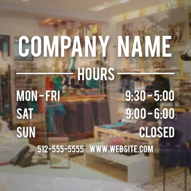 Customized Store Hours Sign Window Sticker Business Vinyl Decal Hours of Operation Sticker Custom Company Name Wall Mural AZ771