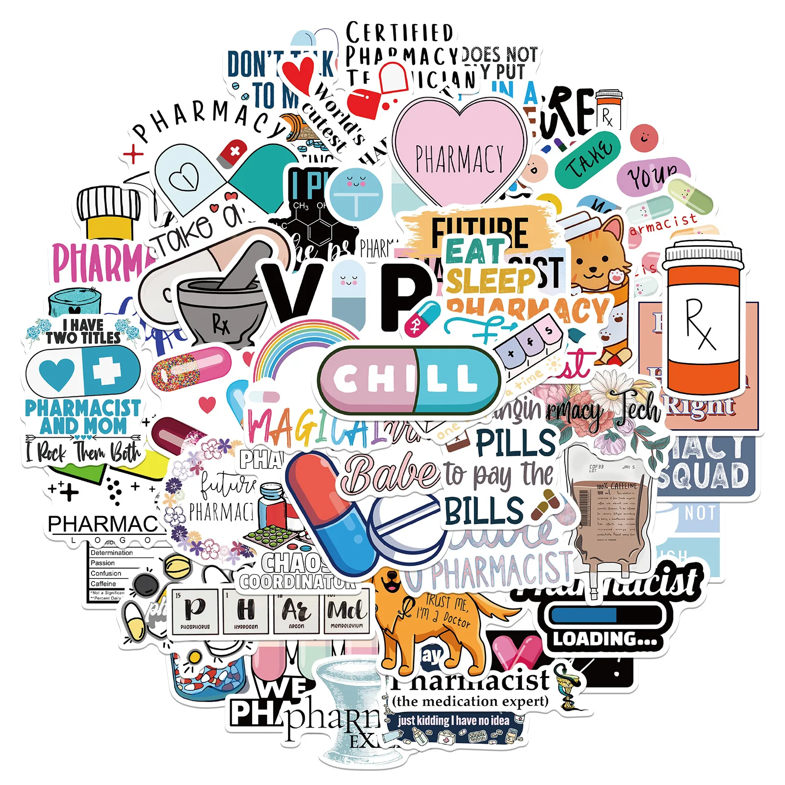 Pharmacy Stickers |50Pcs Pharmacist Apothecary Waterproof Vinyl Decals for Water Bottles Laptop Luggage Cup Computer phone