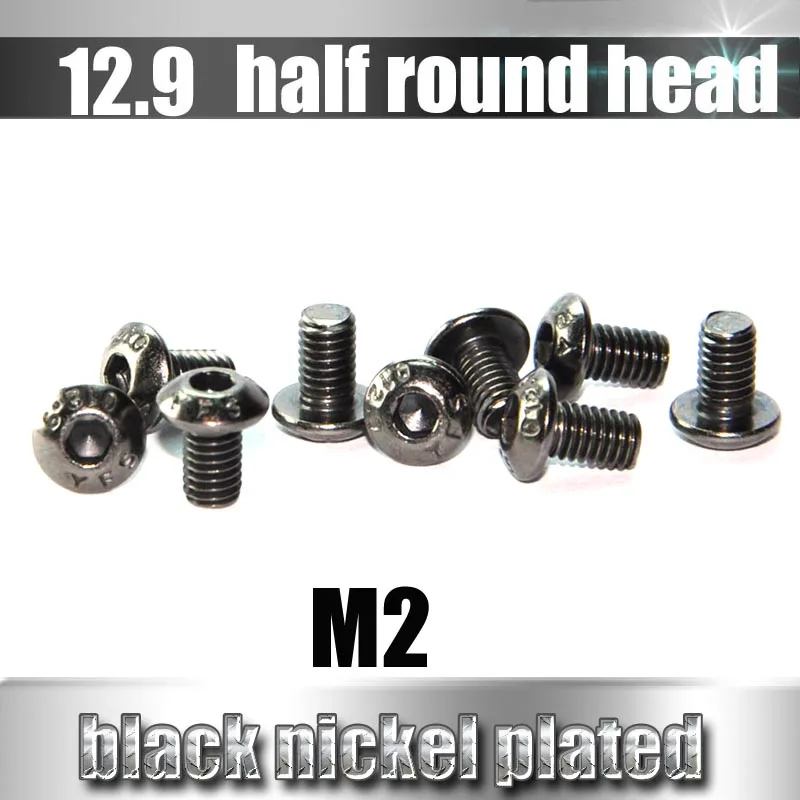 YFS M2 Hex Socket half round Head Screws Grade 12.9 Black Nickel Plated Antirust Screws 10Pcs