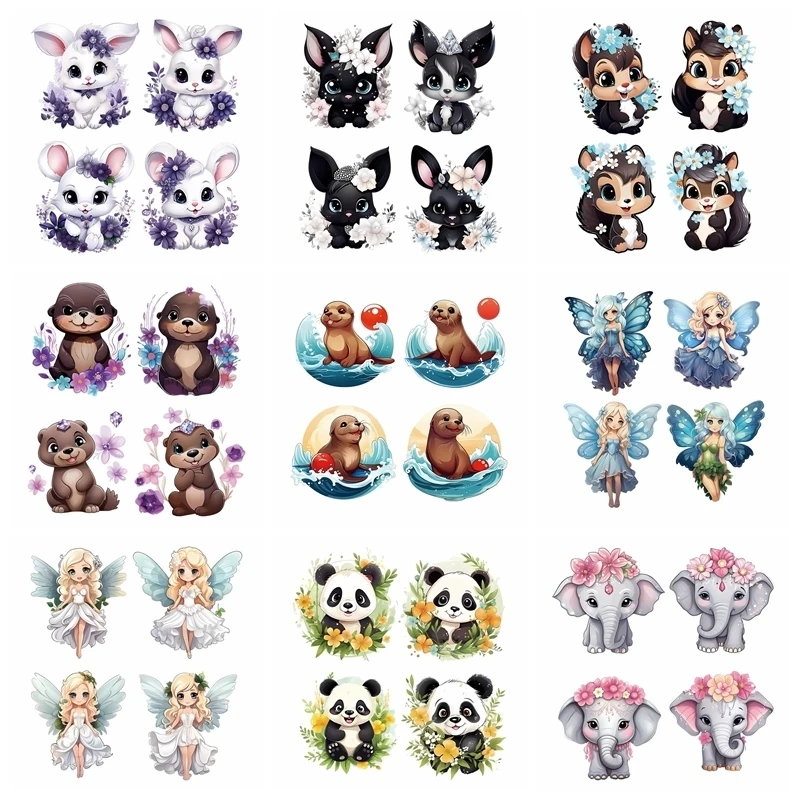 hot stamping Panda, Rabbit, Elephant iron heat transfer printing vinyl stickers T-shirt stickers DIYToy doll clothing decoration