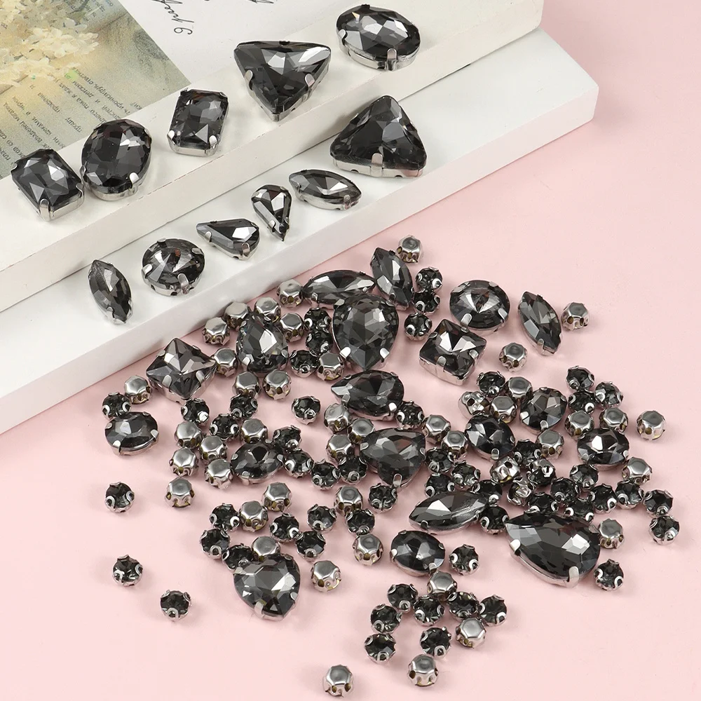 130pcs Mix Color Big Water Drop Glass With Sliver Iron Claw Sew On Stone Strass Metal Base Buckle For Wedding Decoration Clothes