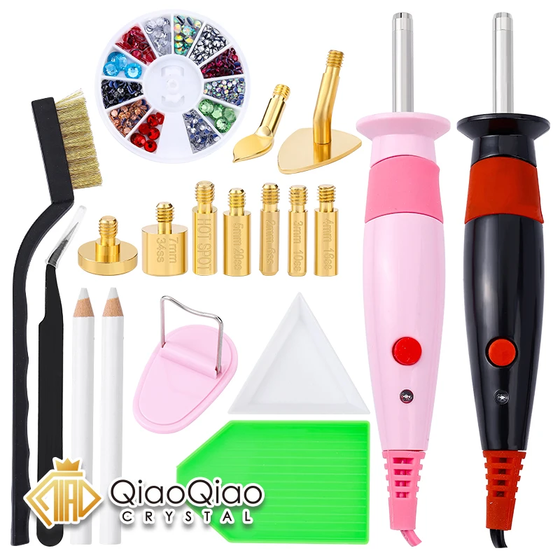 New Fast Heated Hotfix Rhinestones EU/US Plue Applicator Iron-on Wand Heat-fix Tool Gun Mixed Size Hot Fix Rhinestones Glass Gem