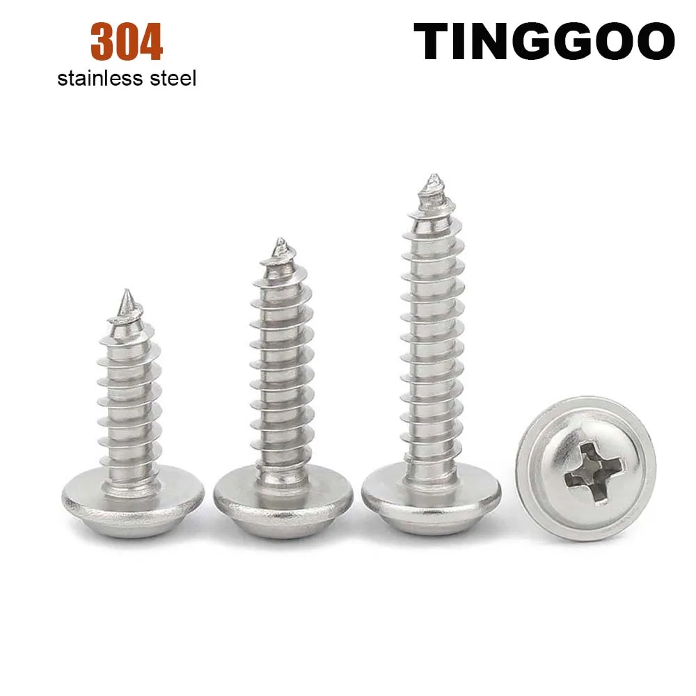10/50Pcs PWB M1.4 M1.7 to M6 304 Stainless Steel Cross Phillips Pan Round Head With Washer Collar Self Tapping Wood Screw DIN968