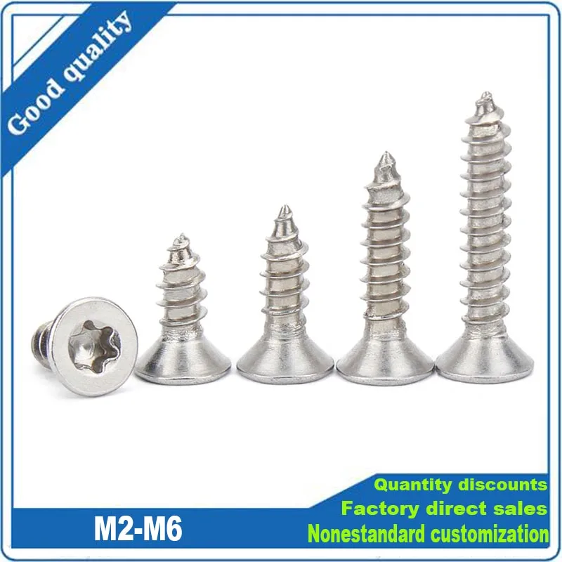 GB2670.2 M2 M2.3 M2.6 M3 M3.5 M4 M5 M6 304 Stainless Steel Six Lobe Torx Flat Countersunk Head Security Self-tapping Wood Screw