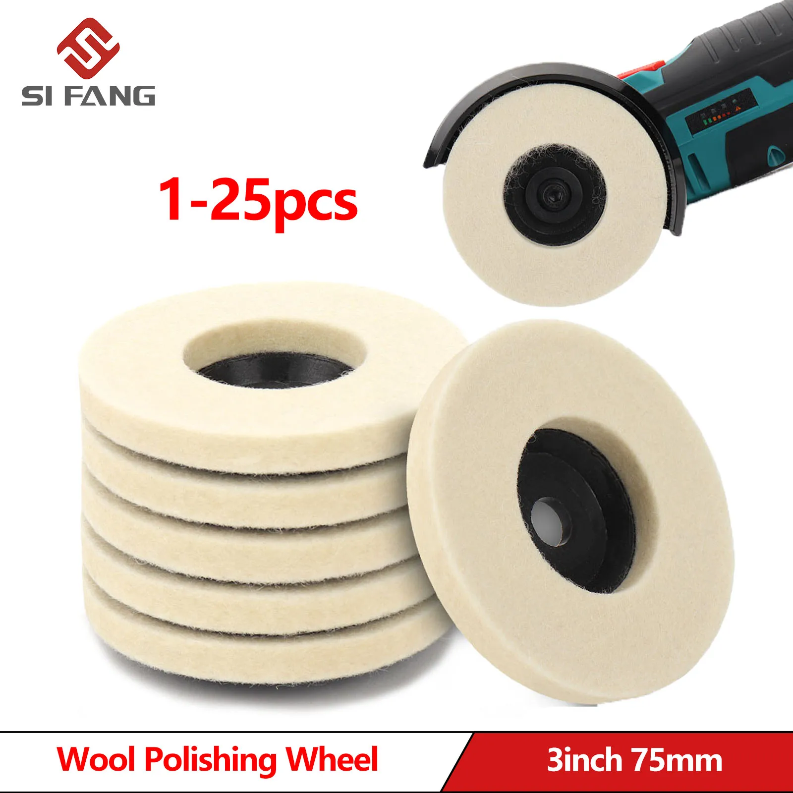 1-25pcs 75mm Wool Polishing Wheel Buffing Pad For Angle Grinder Grinding Disc Metal Wood Stainless Steel Polishing Abrasives