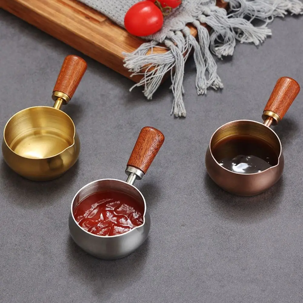 304 Stainless Steel Sauce Pan Wooden Handle 60ml/120ml/180ml Seasoning Cup Reusable Measuring Spoon Steak