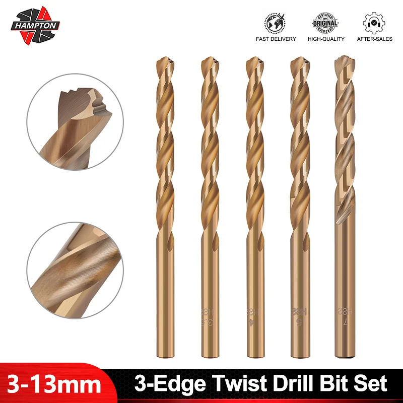 HAMPTON Twist Drill Bit Set M42 3 Edge HSS Hole Drill 8% High Cobalt Drill Bit for Stainless Steel Wood Metal Drilling