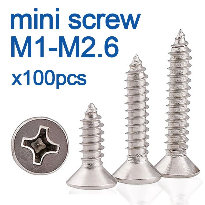 100pcs/lot M1 M1.2 M1.4 M1.7 M2 M2.6 Mini 304 stainless steel Cross Phillips Flat Countersunk Head Self-tapping Wood Screw