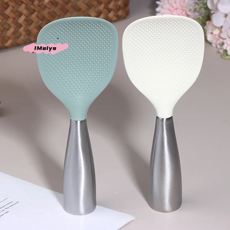 1Pc Silicone Cooking Spoon with Stainless Steel Handle Non-Stick Anti-Scalding Durable Kitchen Gadget for Pot And Rice