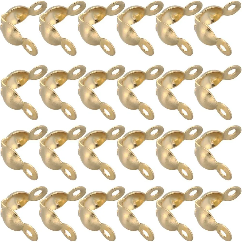 200Pcs Open Bead Tips Knot Cover Gold Bead Tips 304 Stainless Steel Crimp Bead Covers Knot Cover Crimping Beads Ends Knot