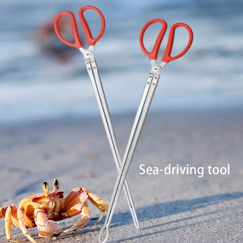 Long Nose Pliers Stainless Steel Tongs Handle Anti-slip Tooth Clamp of Outdoor Sea Crab Ricefield Eel Fishing Catch Hunting Tool