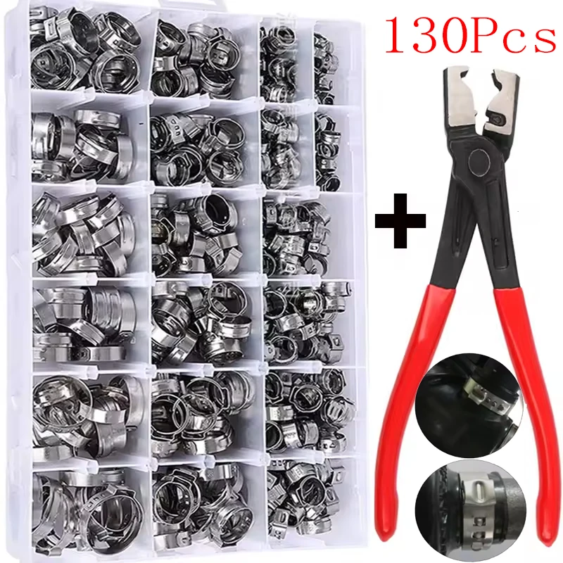 130/80/45PCs Stainless Steel Ear Stepless Clamp Worm Drive Fuel Water Hose Pipe Clamps Clips 1PC Hose Clip Clamp Pliers