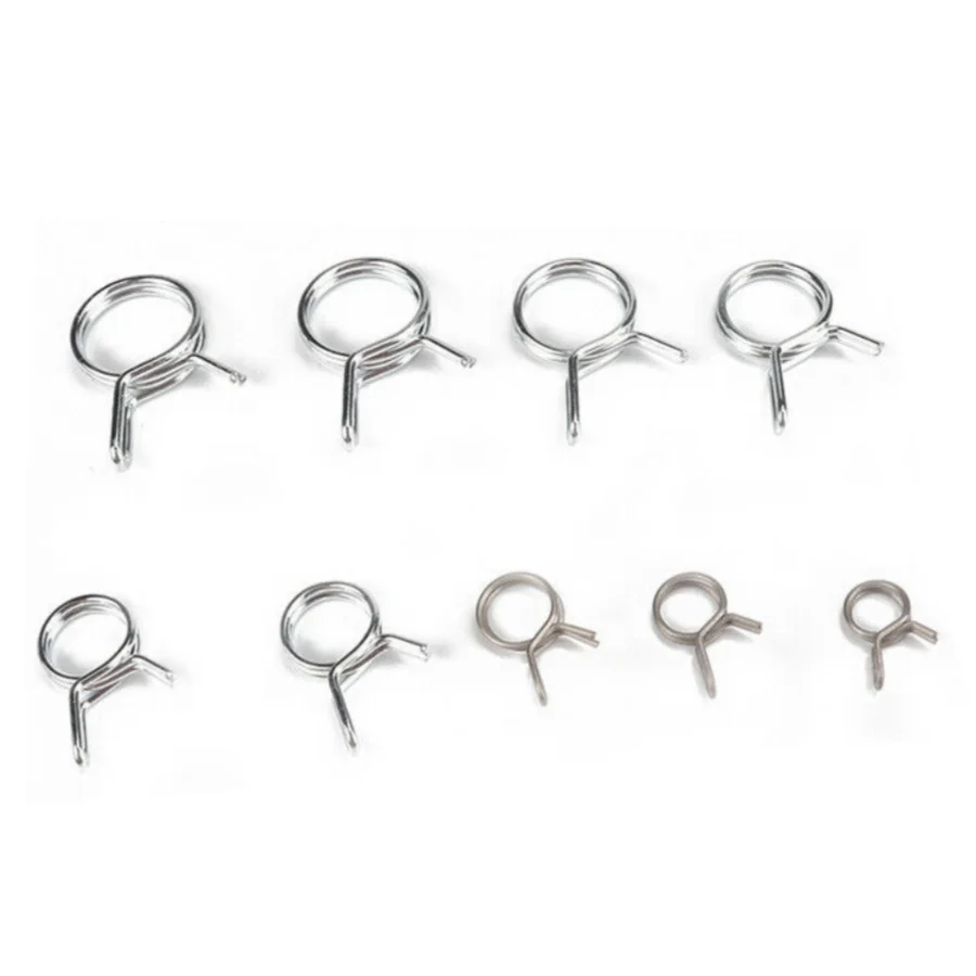 20Pcs Stainless Steel Spring Tube Clamp Double Spring Tube Clamp for Motorcycle Fuel Line Hose Wire
